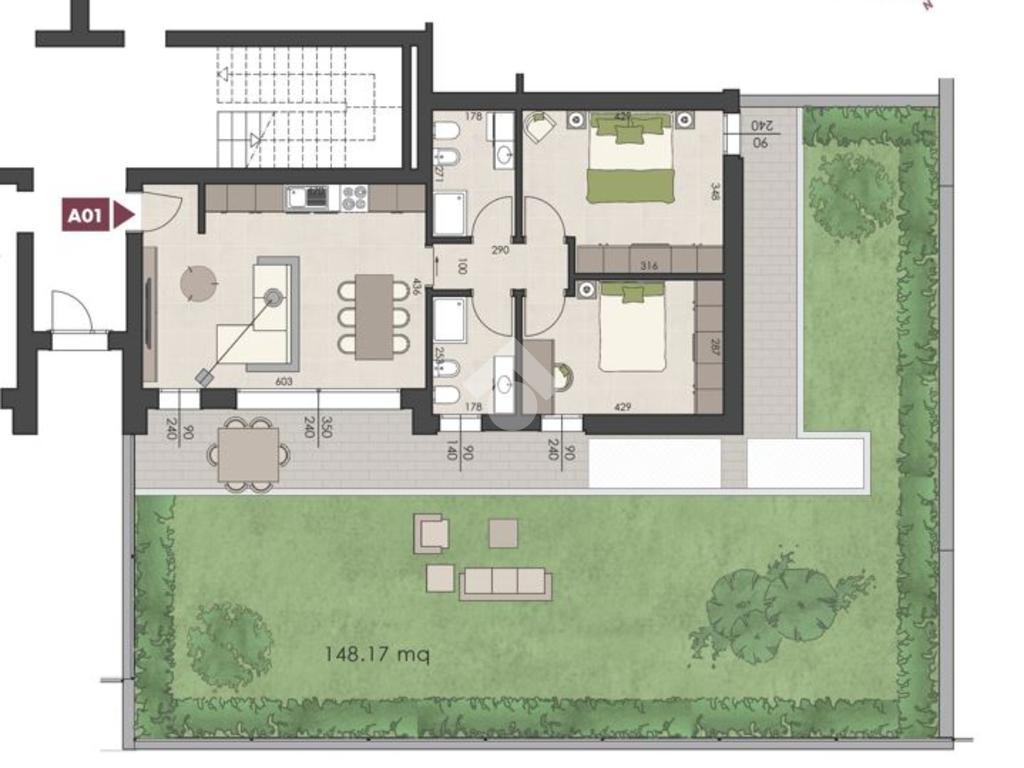 Giardino privato di 150 mq.